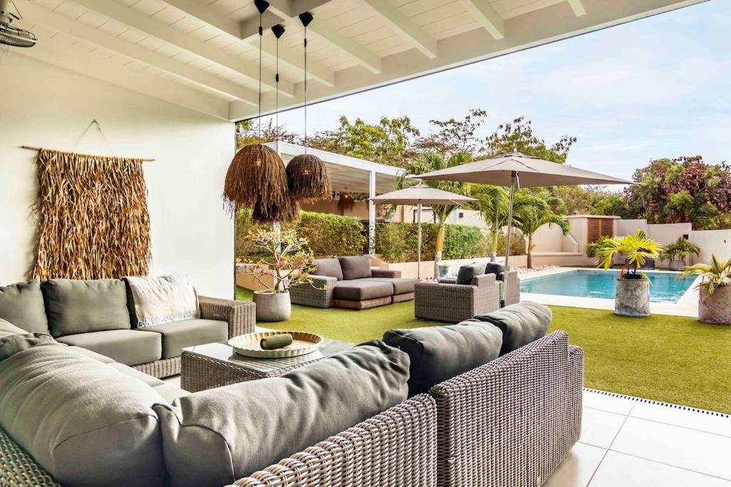 Villa Leon in Jan Thiel is the ideal retreat for families and groups. It offers a perfect blend of luxury and space. Featuring four comfortable bedrooms and four modern bathrooms, this villa ensures privacy for everyone. Each bedroom provides a cozy atmosphere with stylish decor. The spacious living room invites guests to relax after a day of adventure. Family rooms are thoughtfully designed with ample seating and modern furnishings. As a result, every moment spent indoors feels welcoming and serene.